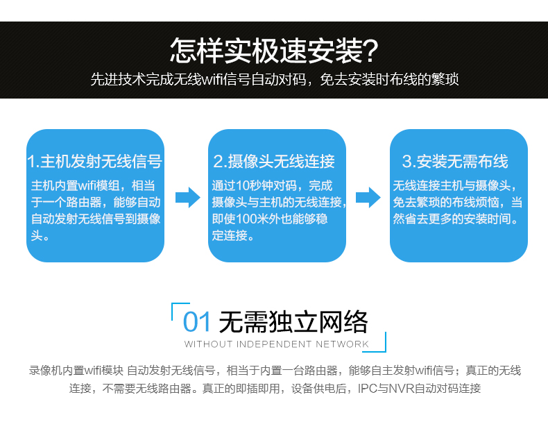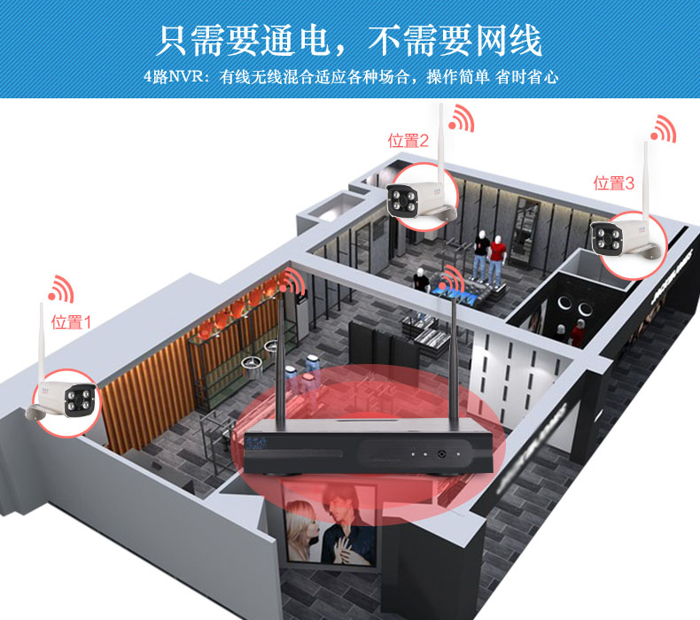 只需要通電不需要網(wǎng)線,高清960P,即插即用免設(shè)置,手機(jī)一鍵遠(yuǎn)程,想看就看,wifi傳輸無需布線。 4路NVR:有線無線混合適應(yīng)各種場合,130萬960P,夜視好穿透力強(qiáng),操作簡單,省時省心。